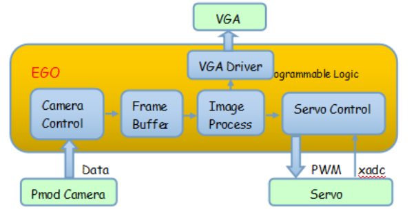 基于EGO模式识别平台,通过其上摄像头与VGA显示器,设计一个摄像头目标追踪系统,并控制其上舵机,实现FPGA上实现图像采集处理与目标追踪,依元素提供如下设计的原始参考工程、参赛者需基于此进行差异化设计或性能优化。