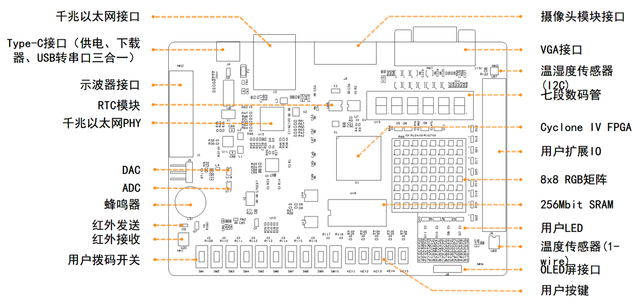 1.板载USB-Blaster 二代下载线,提高开发效率;