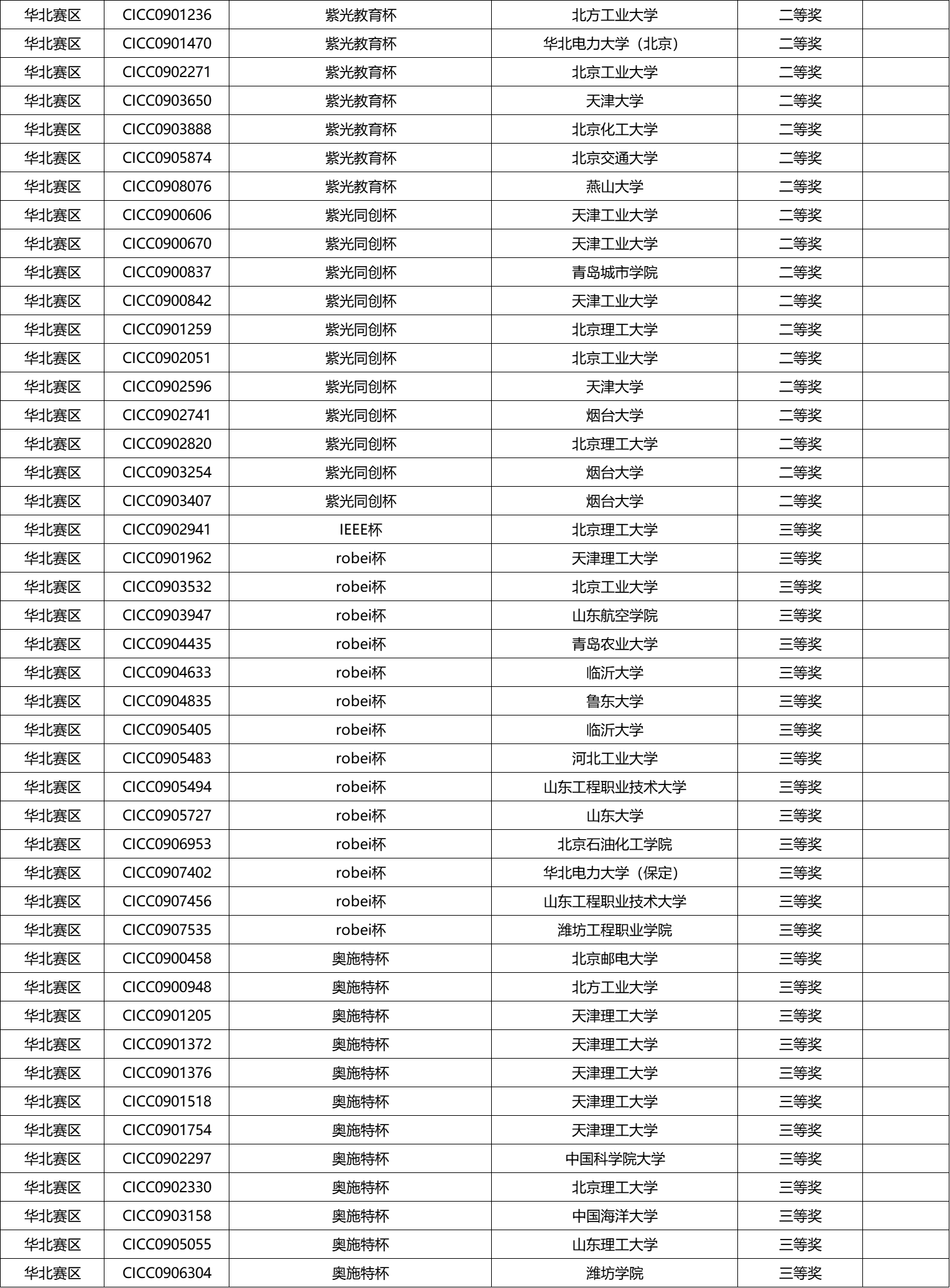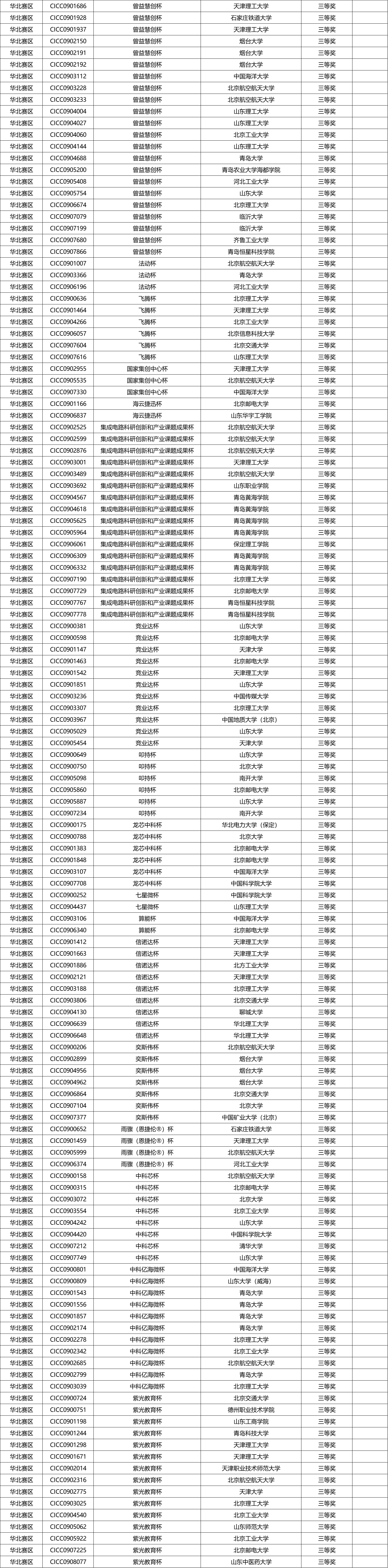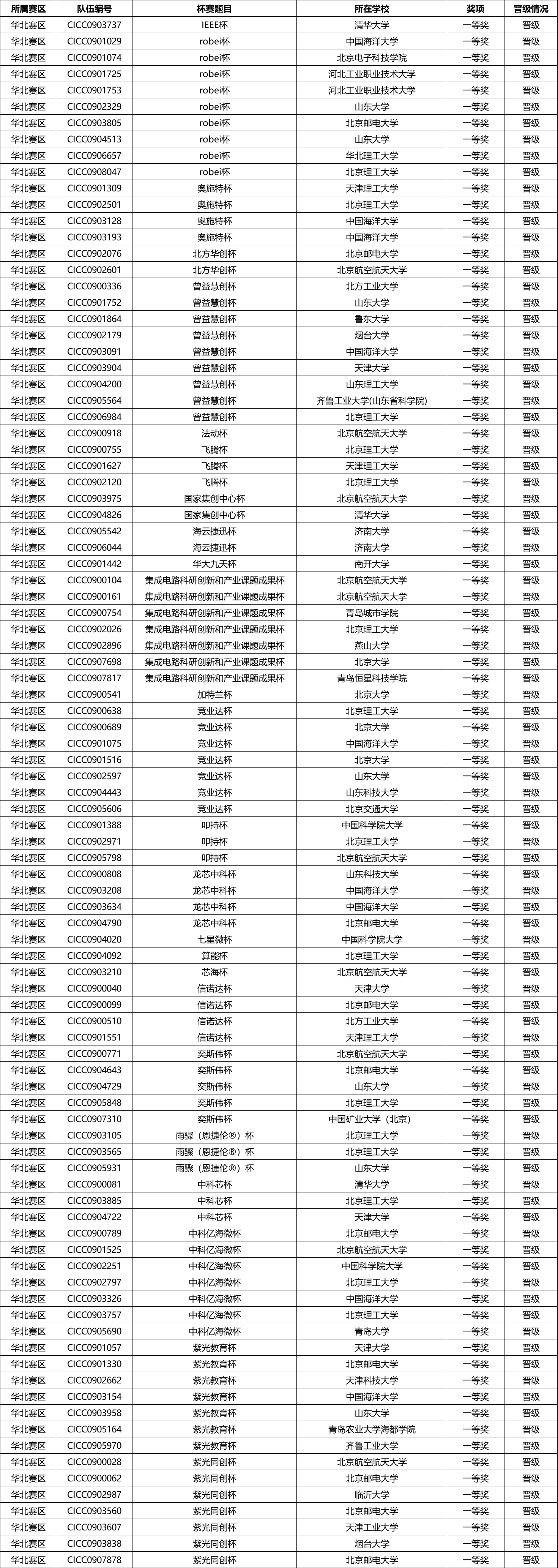 华北分赛区决赛获奖名单公示