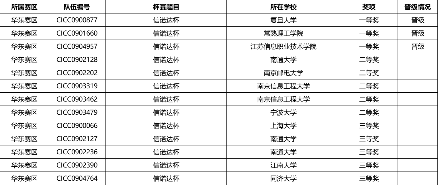 为便于查找,本表参考以下顺序进行排序:奖项、杯赛、编号、学校,与团队成绩无关。