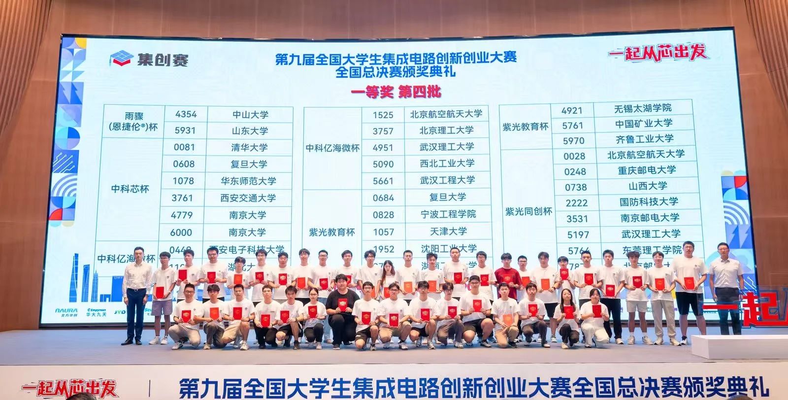 第九届全国大学生集成电路创新创业大赛于2025年1月启动,共分为4大赛道,11个技术方向,25个杯赛,覆盖集成电路全产业链,报名队伍超过7400支,参赛师生逾20000人,参与高校500余家。经过西南、华北、东北、华中、华东、华南、西北七大分赛区选拔,有来自161所高校的662队伍晋级全国总决赛。8月22日到8月23日,大赛总决赛各参赛团队在上海海洋大学进行答辩,经过为期两天的激烈角逐,共有134支队伍获得一等奖、200支队伍获得二等奖、313支队伍获得三等奖。